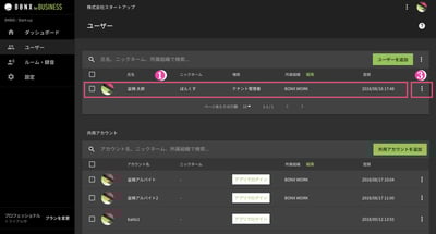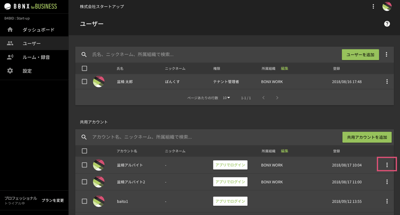 共用アカウントの編集は、該当アカウントの右端にある[・・・]を押すと、[共有アカウントを編集]がポップアップして編集できるようになります。