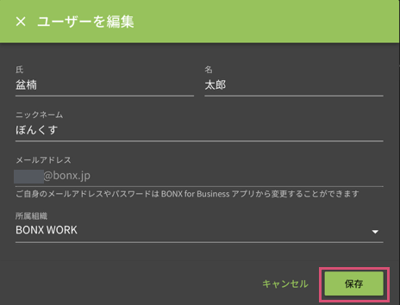 編集後、[保存]を押すとユーザー情報が変更されます。
